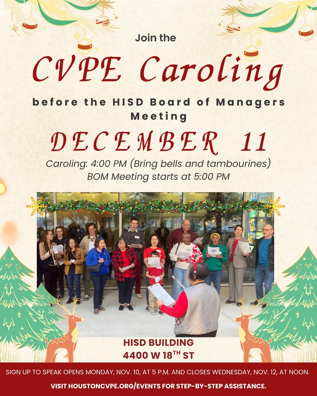 On Thursday, 12/11/2025, come to the HISD Board of Managers meeting at 5:00 pm at HISD, at 4400 W 18th St. Bring family and friends. Kids and parents who fill out an extra step 5 below) speak first and everyone speaks on a first-come first-served basis. Zoom speakers are after in-person speakers.