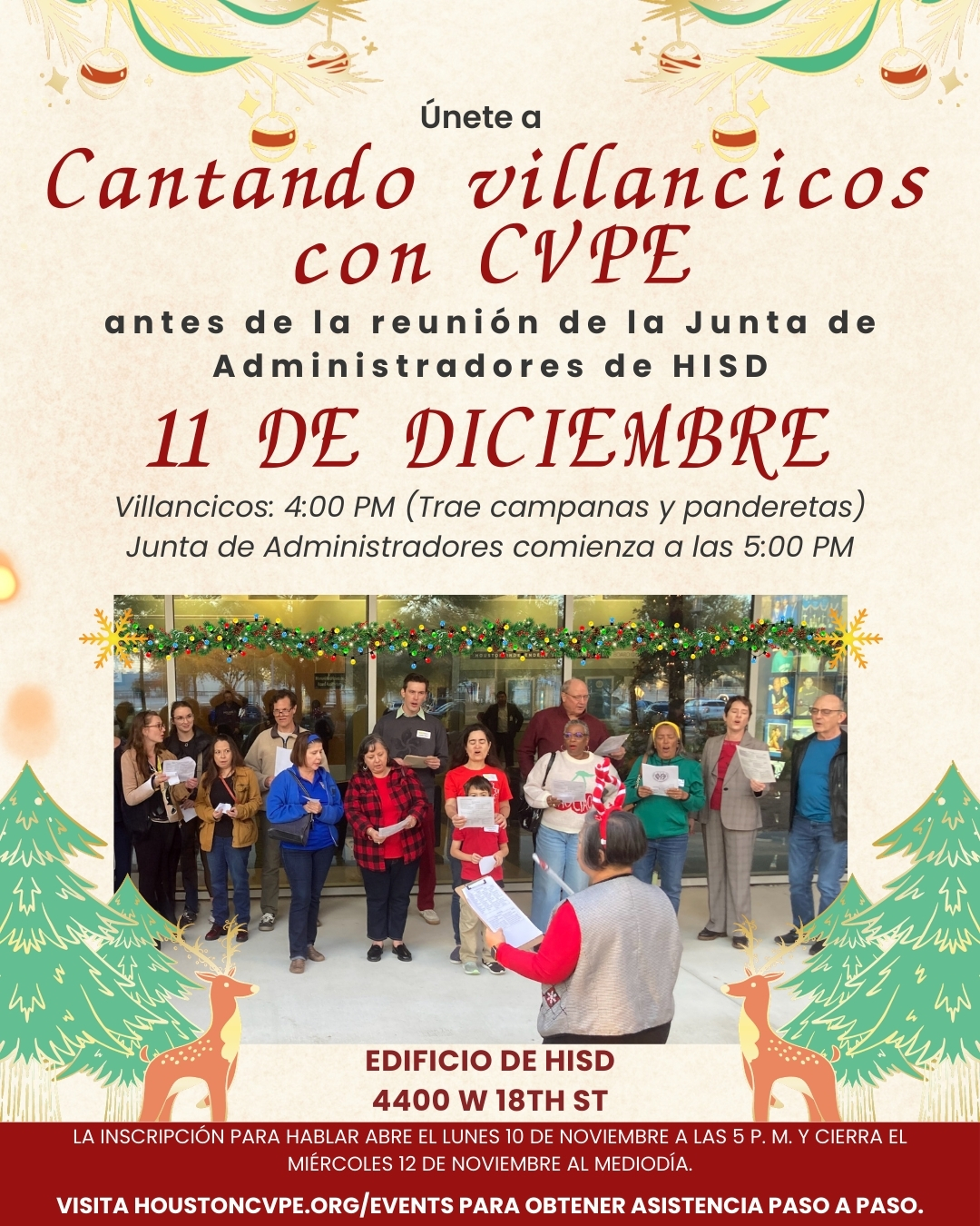 Jueves 13 de noviembre, asiste a la reunión de la Junta de Administradores de HISD a las 5:00 pm en HISD, en 4400 W 18th St. Trae a familiares y amigos. Los niños hablan primero y los adultos hablan según el orden de llegada.