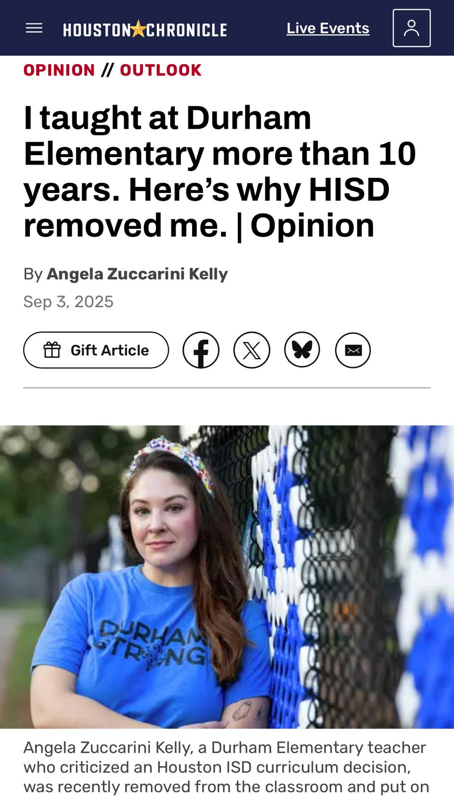A beloved Durham teacher with 11 years of service, top scores, and deep family ties to HISD was abruptly removed “to protect the culture.” [LINK]